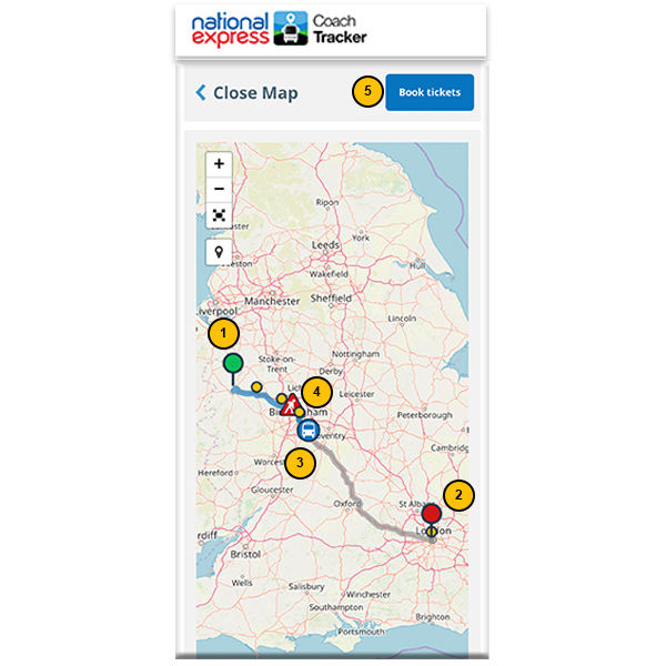 - View your coach on a map so you're kept fully up-to-date with your journey's progress.